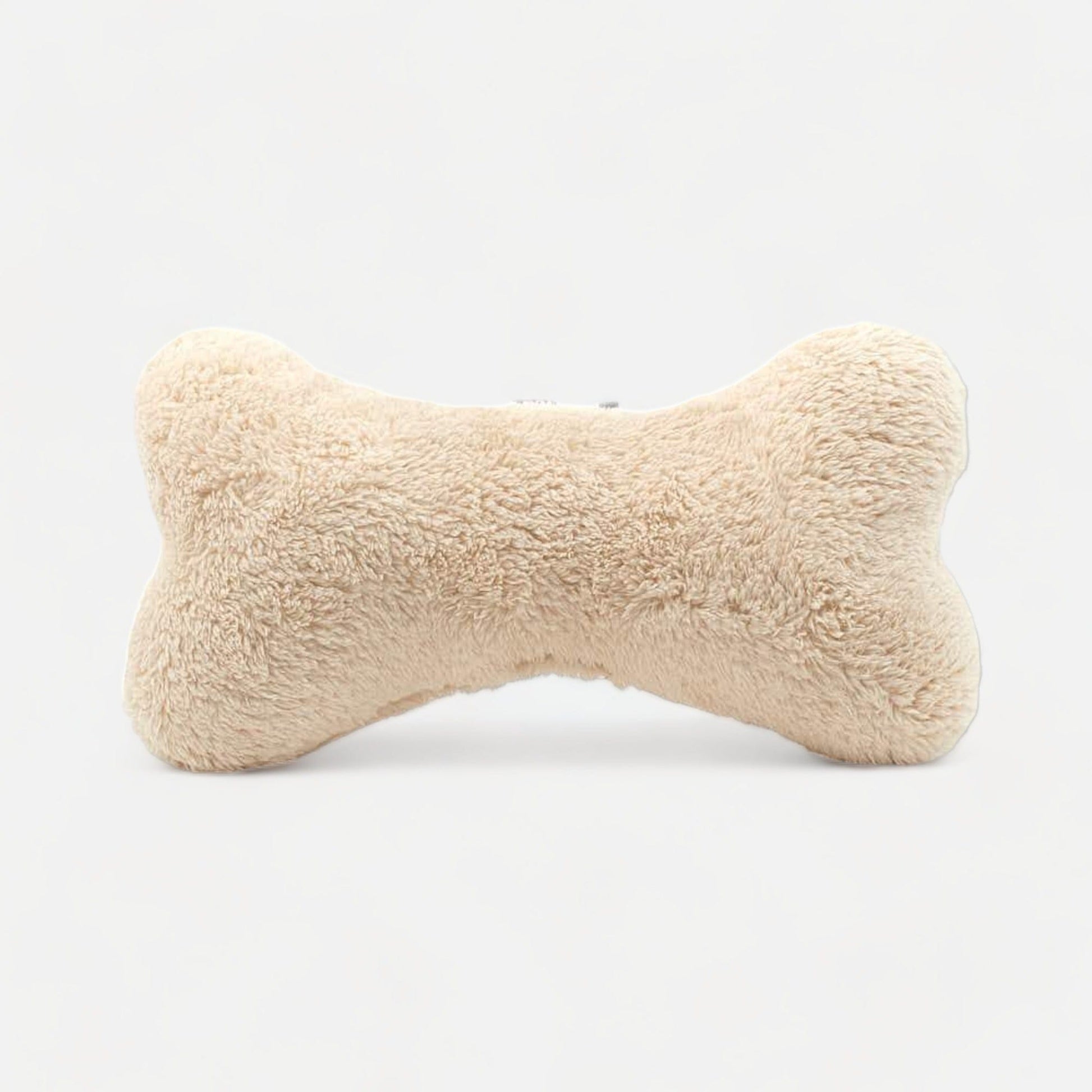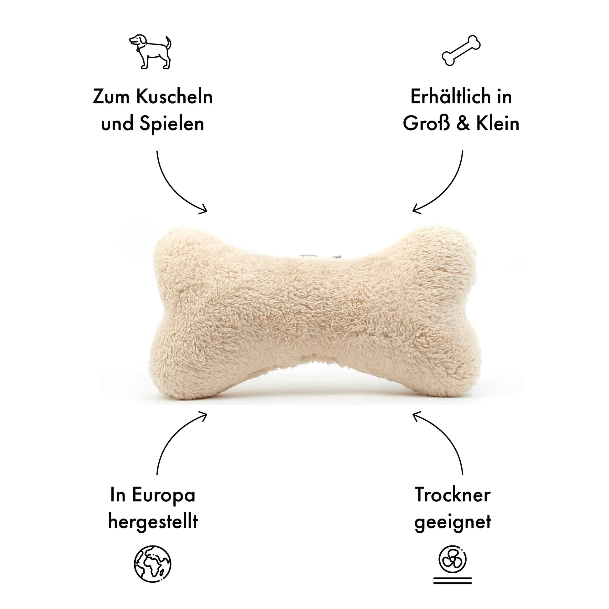 Hoogwaardig stoffen bot van beige gekleurd pluche - stijlvol speelgoed zonder piepgeluiden. Zachte vulling voor knuffel- en werpplezier.
