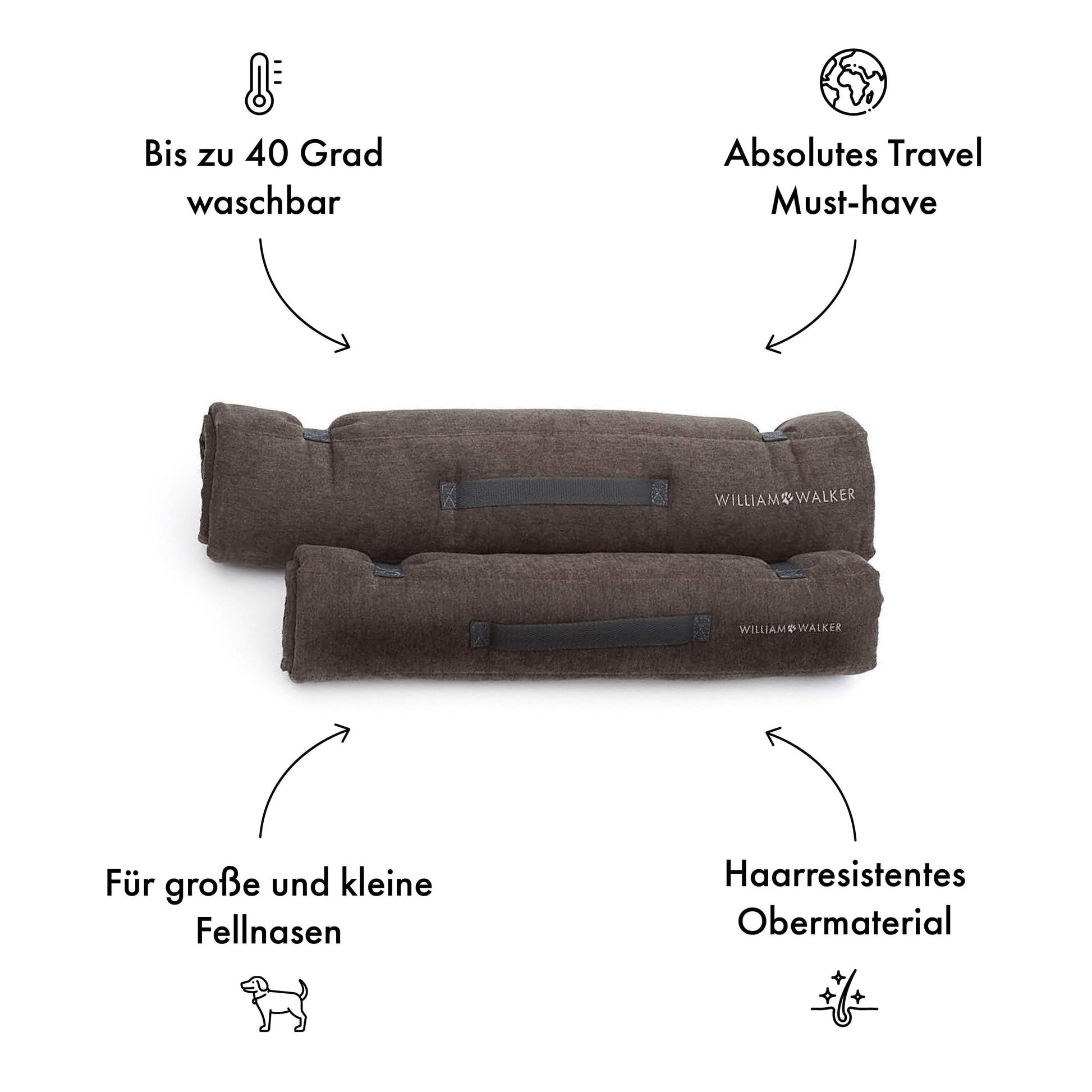 Gewatteerde reismat met gewatteerde vulling in stijlvol grijs. Makkelijk te vervoeren dankzij de praktische draaggreep.