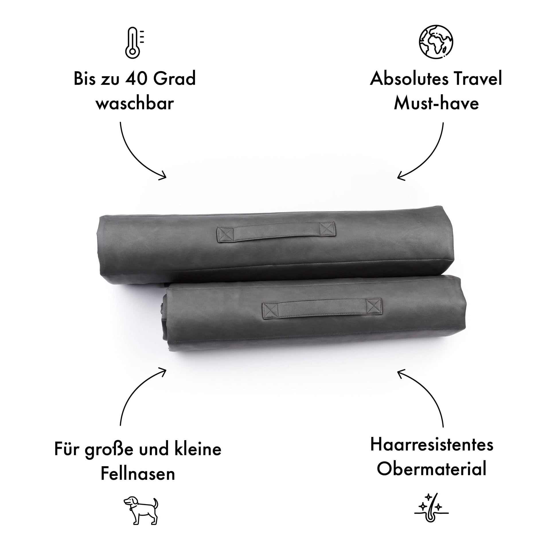 Hoogwaardige grijze reismat met uitneembare extra vachtlaag. Beschermt tegen vocht en kou. Makkelijk te vervoeren dankzij de praktische draaggreep.
