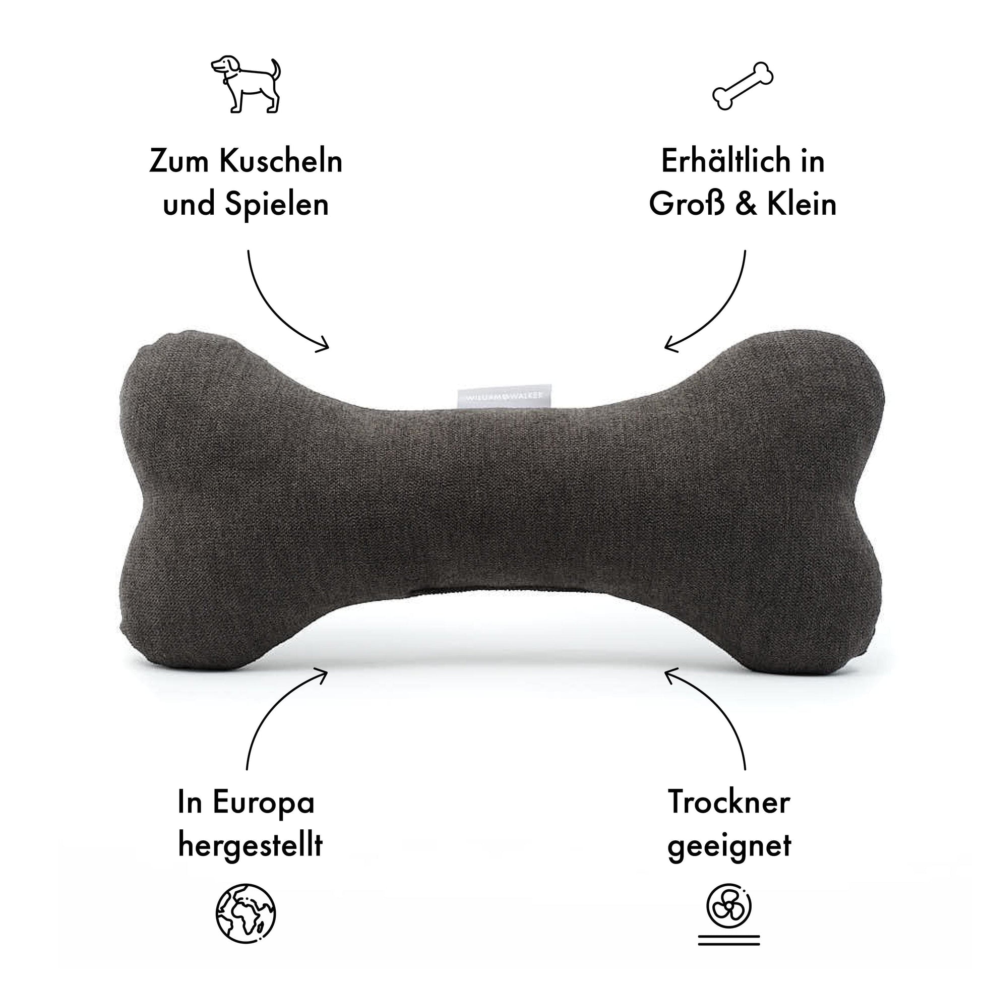 Hoogwaardig bot van donkergrijze stof - stijlvol speelgoed zonder piepgeluiden. Zachte vulling voor knuffel- en werpplezier.